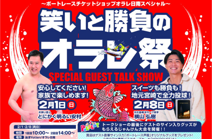 PR イベント 笑いと勝負の「オラレ祭」開催!とにかく明るい安村&元広島東洋カープ横山弘樹が登場!... 2026年1月20日 【日南】笑いと勝負の「オラレ祭」開催!とにかく明るい安村&元広島東洋カープ横山弘樹が登場! 広島東洋… Read more